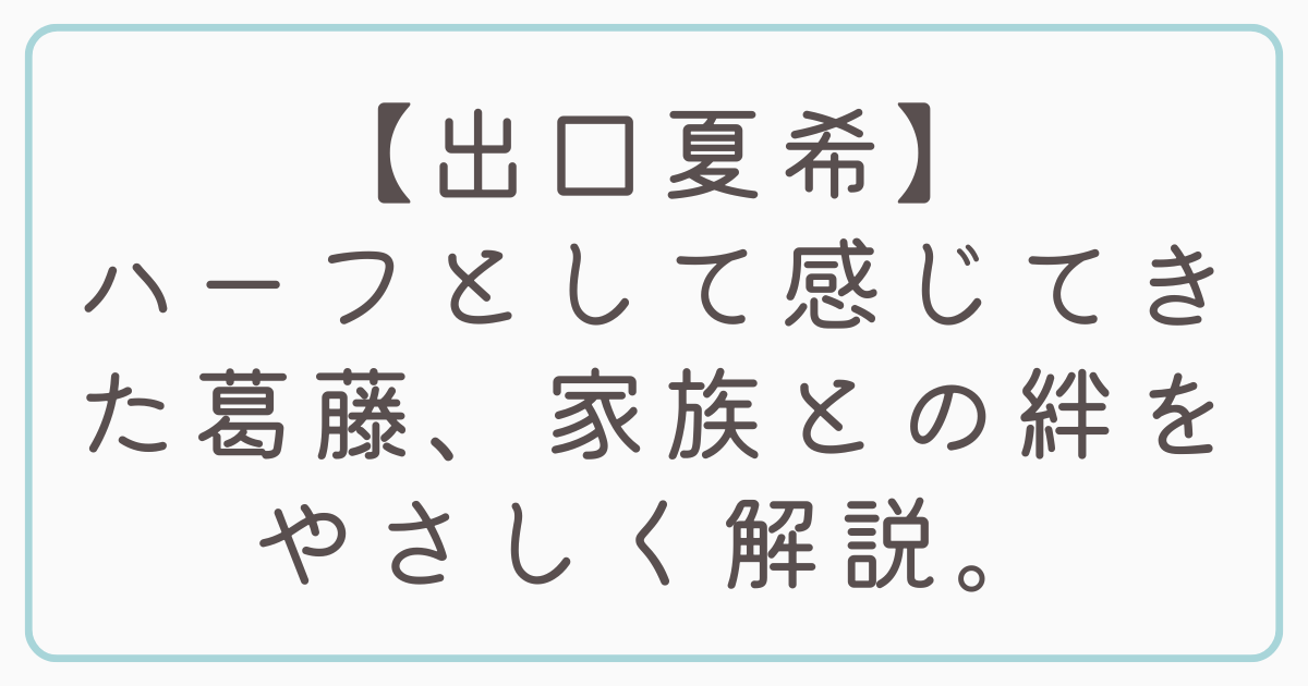 ハーフであることへの迷いや、周囲との違いに悩む瞬間があったとしても、家族の存在が彼女の背中を押し続けてくれたのではないでしょうか。