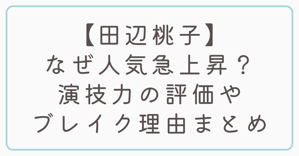 👉 田辺桃子のプロフィールまとめ|経歴・趣味・出演作を徹底解説